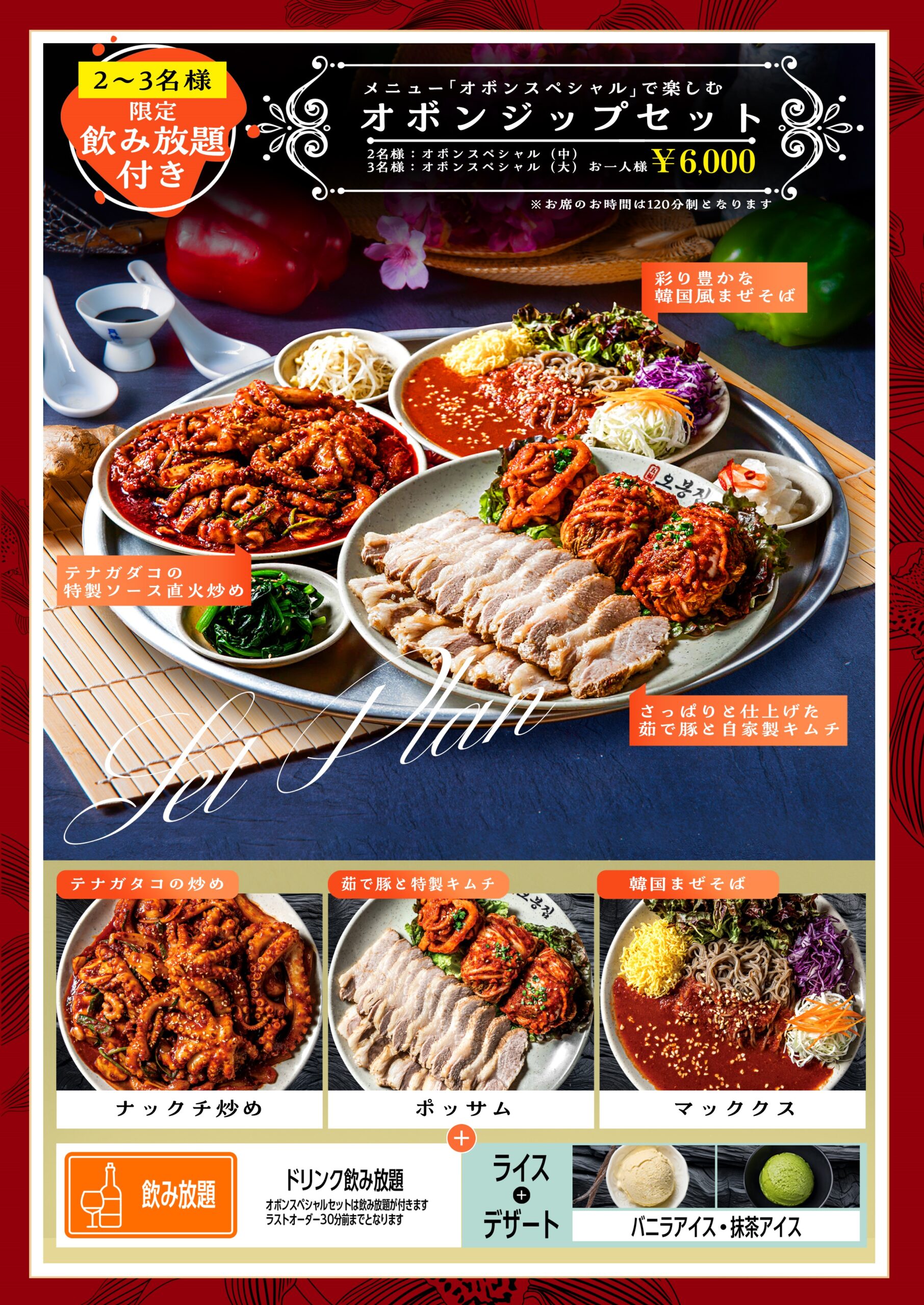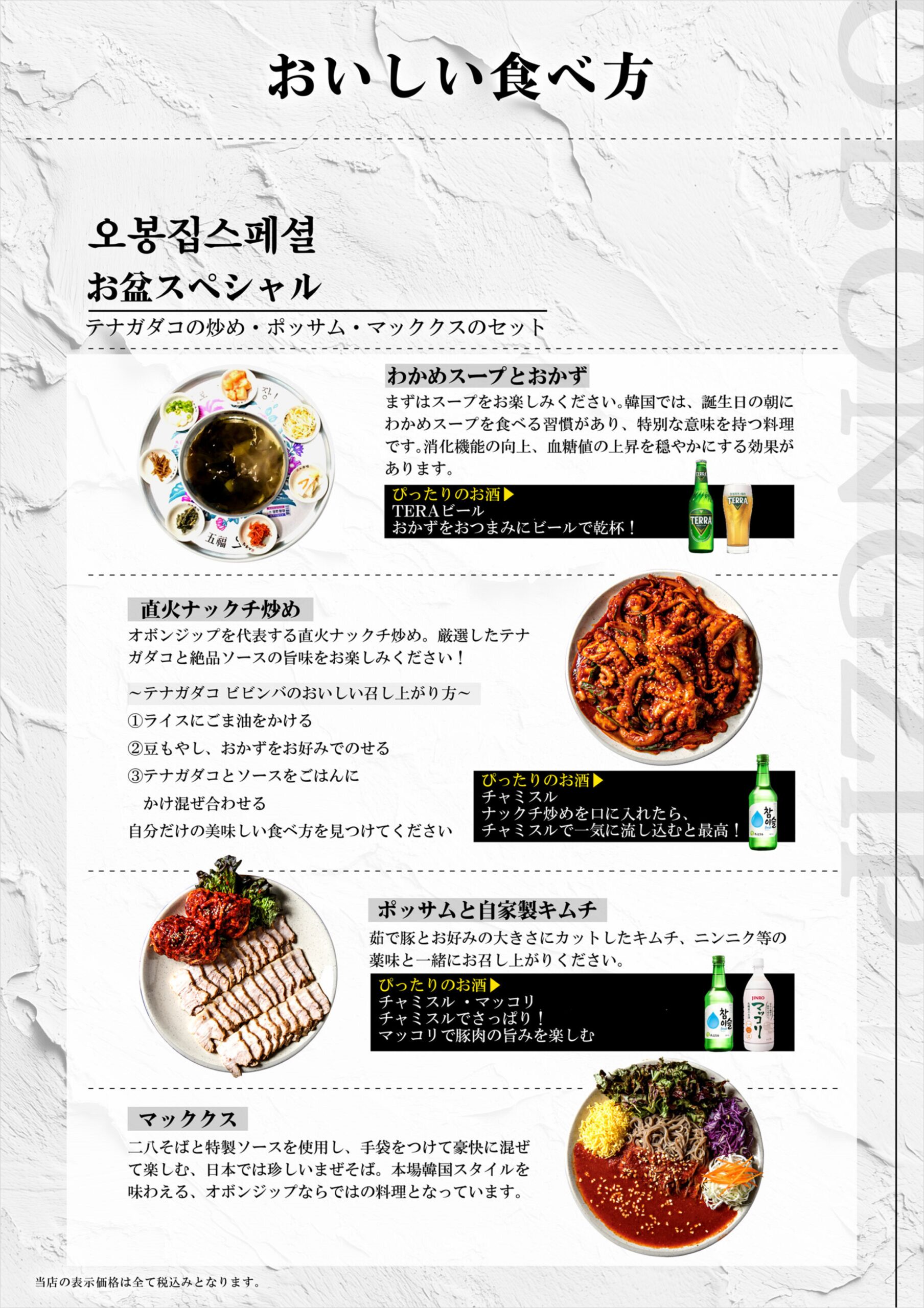 【公式】五福「オボンジップ」|秘伝の直火タコポッサム-本場の韓国料理を堪能